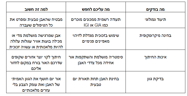 זיהוי שלאבני חן לתכשיטים באיכות גבוהה דורש עין מקצועית, אבל הבנת סימני ההיכר הבסיסיים תסייע לכם להבחין בין אבן באיכות פרימיום לבין אבנים פשוטות יותר: