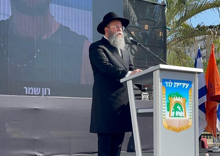 הרב הראשי ללוד, הרב שמעון מאיר ביטון נשא תפילת “קדיש” ו”אל מלא רחמים” והקהל כולו עמד על רגליו לזכר הנופלים והנרצחים.